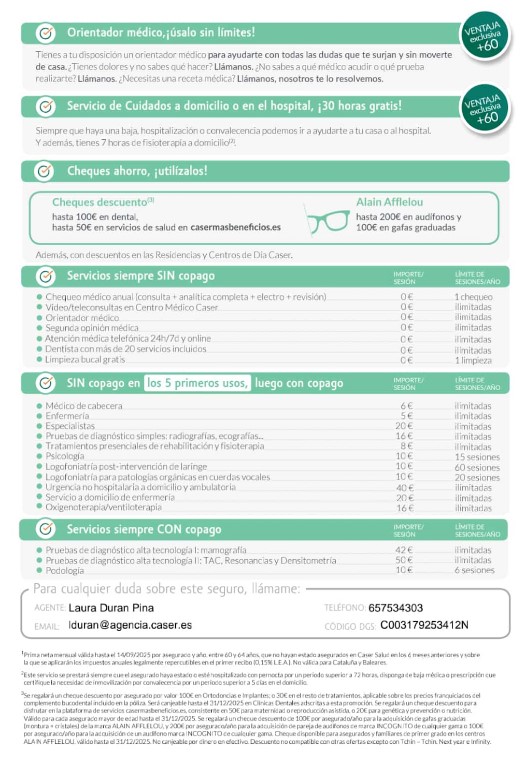 No solo te ofrezco seguros, te ofrezco tranquilidad. Mi objetivo es que duermas tranquilo sabiendo que cuentas con mi respaldo y el de Caser. Estoy aquí para resolver tus dudas, gestionar tus pólizas y acompañarte en cada paso del camino. Juntos, construiremos un futuro seguro y protegido para ti y tus seres queridos.
